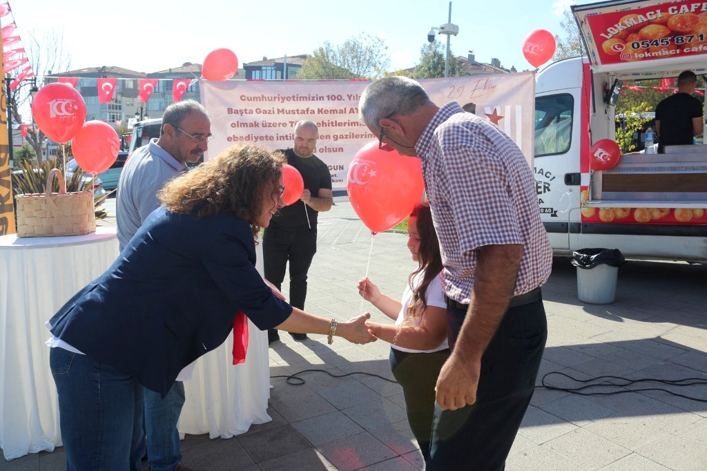 3 Kemaller Meydanı’nda gerçekleşen organizasyonda lokma dağıtımının yanı sıra çocuklara yüzüncü yıl logolu balon, büyüklere ise şanlı Türk Bayrağımız armağan edildi.