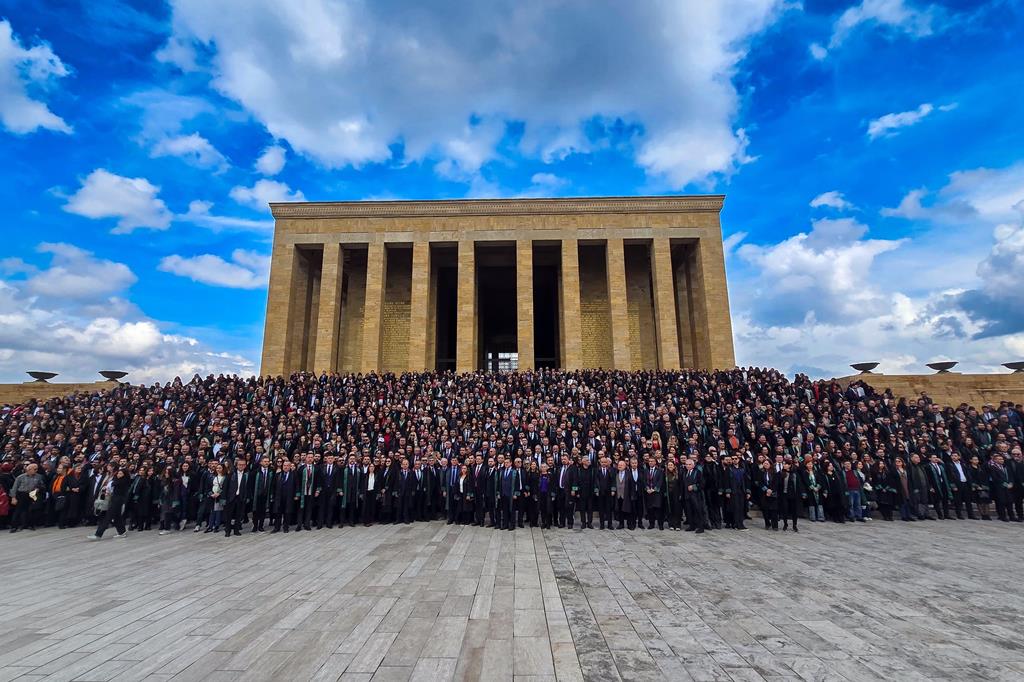 Basın açıklamasının ardından kortej, Anıtkabir’e doğru yürüyüşe geçti. Aslanlı Yol’dan geçerek Ulu Önder Mustafa Kemal Atatürk’ün huzuruna çıkan avukatlar, Türkiye Cumhuriyeti’nin kurucu iradesine bağlılıklarını bir kez daha gösterdi. TBB Başkanı Av. R. Erinç Sağkan’ın mozoleye çelenk bırakmasının ardından saygı duruşunda bulunuldu. Heyet ile birlikte daha sonra Misak-ı Milli Kulesi’ne geçen Sağkan, Anıtkabir Özel Defteri’ni imzaladı.