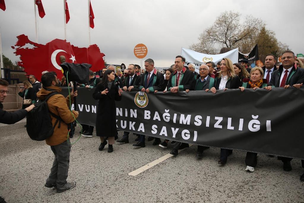 Yürüyüş kortejinin oluşturulmasının ardından avukatlar; “Savunma Susmadı, Susmayacak”, “Hukuk için Adalet için Avukatlar Burada”, “Avukat Yaşarsa Adalet Yaşar”, “Avukatın Sesi Kesilirse Yurttaşın Nefesi Kesilir”, “Avukata Şiddete Hayır”, “Bağımsız Yargı” yazılı pankartlar ve sloganlarla Anıtpark’a yürüdü.