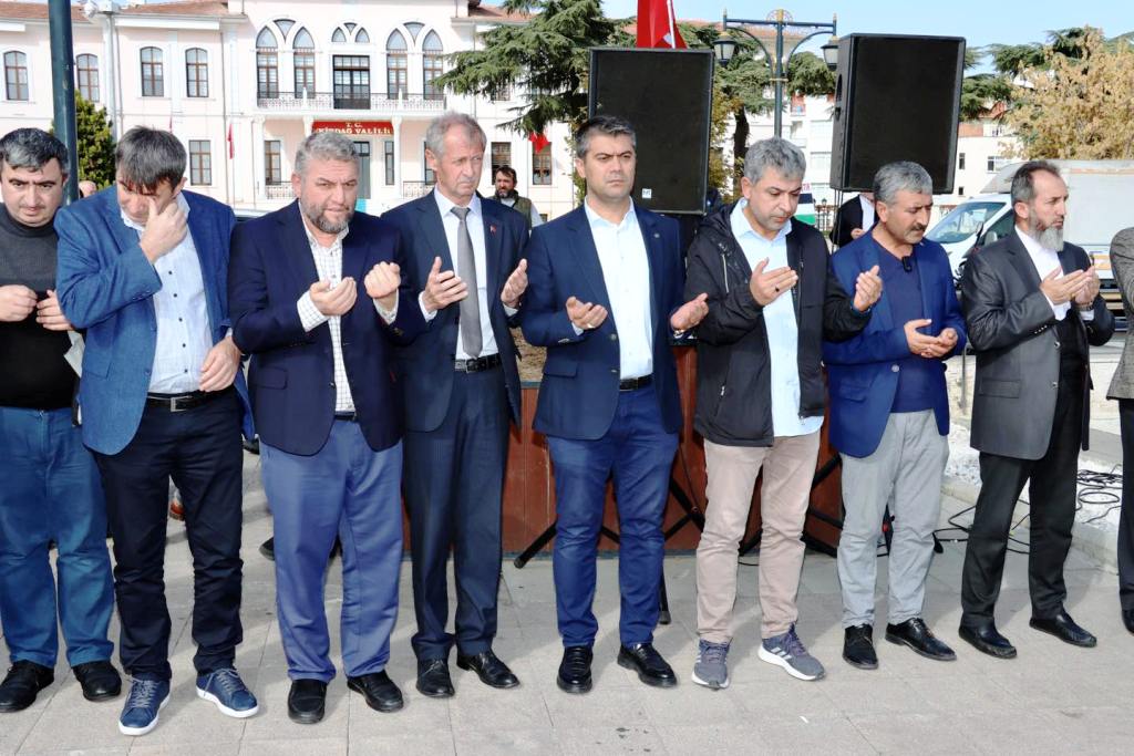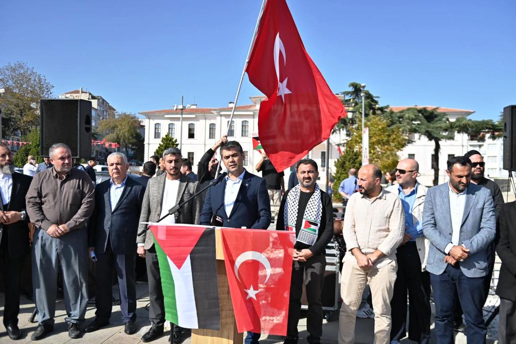 Filistin için duaların edilip destek çağrısı yapılan açıklamada AK Parti Tekirdağ İl Başkanı Ali Gümüş, bir konuşma gerçekleştirerek vatandaşlara seslendi.