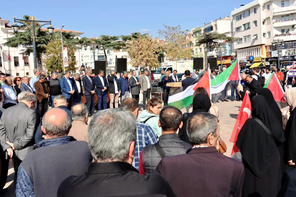 AK Parti Tekirdağ İl Başkanı Ali Gümüş’ün ardından açıklamalar devam ederken İsrail’in zulmü sık sık atılan sloganlarla protesto edildi.