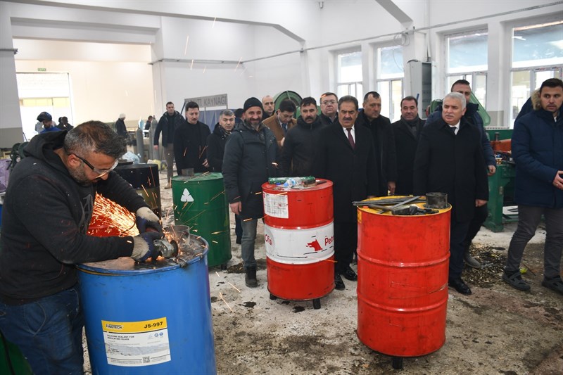 Tekirdağ Valisi Aziz Yıldırım, Tekirdağ Mesleki ve Teknik Anadolu Lisesi’nde deprem bölgesinde kullanılmak üzere hazırlanan varil soba imalatını incelemelerde bulundu.