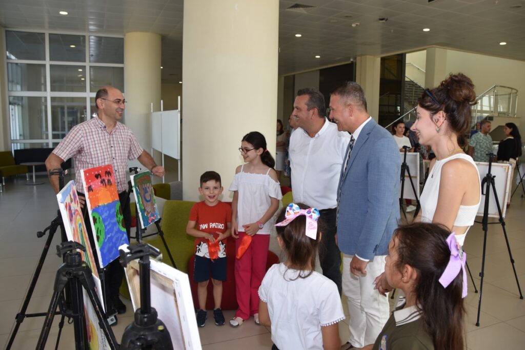 Kurdele kesim töreninin ardından minik ressamların yaptığı eserlerin yer aldığı sergi gezildi. Sonrasında katılımcılara teşekkür belgeleri Rektör Yardımcısı Prof. Dr. Murat Taşan, Dekan Prof. Dr. Murat Özyavuz ve Resim Bölümü Başkanı Doç. Dalila Özbay tarafından takdim edildi.