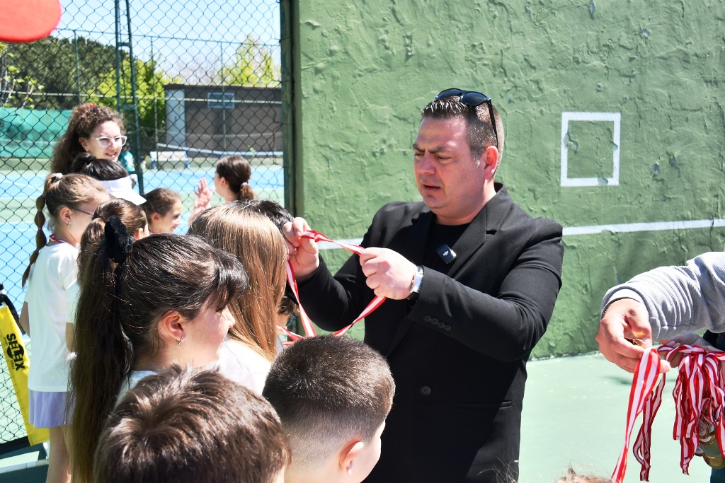 Geleceğin tenis yıldızlarının turnuva için kortlara çıktığı organizasyonda 150 minik sporcu şampiyonluk için değil, bayram coşkusu için raket salladı.