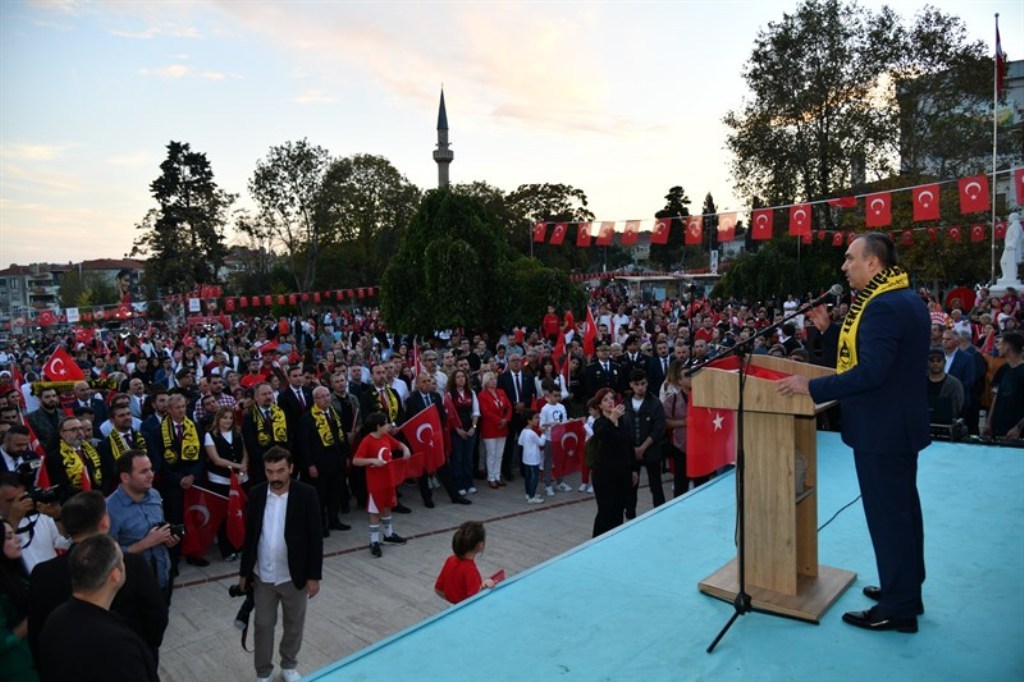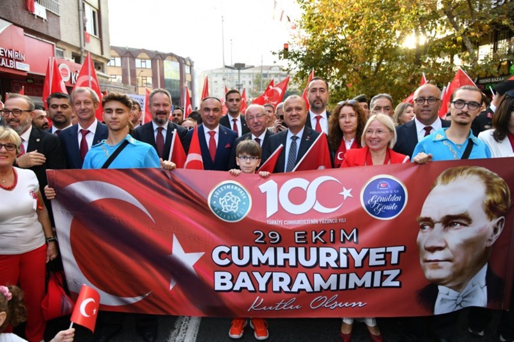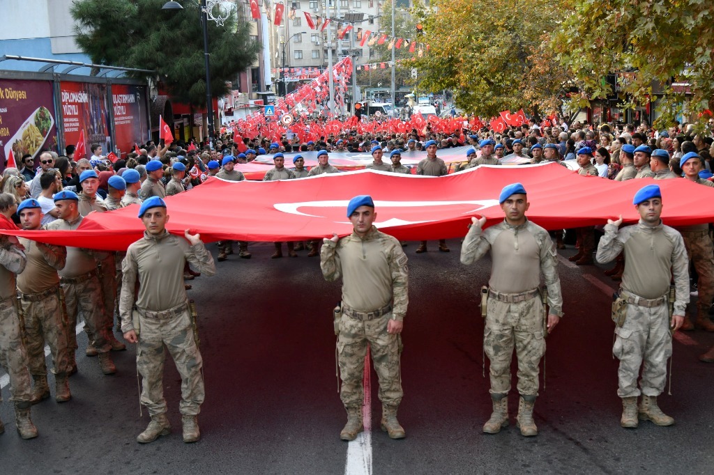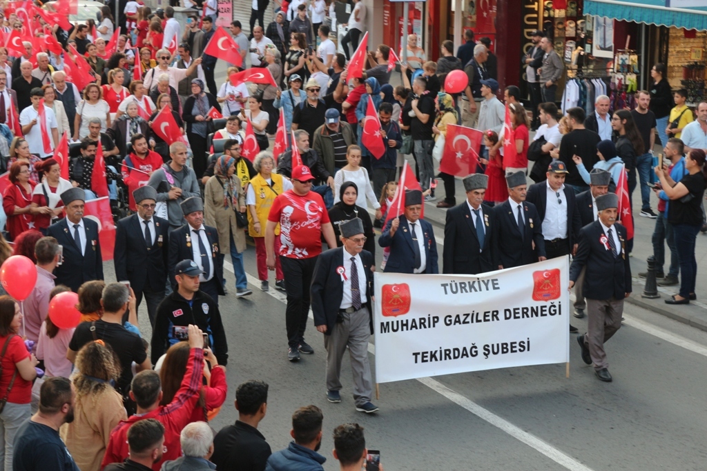 Ay yıldızlı bayraklar ve marşlarla coşku içinde yürüyen on binlerce Tekirdağ Cumhuriyet’in 100. Yaşını doyasıya kutlarken yol kenarları ve kaldırımlar da cumhuriyet sevdalıları ile doldu taştı.