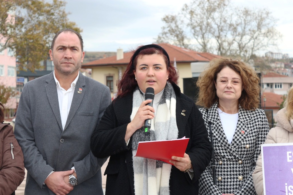 CHP Tekirdağ İl Kadın Kolları Başkanı Büşranur Pelen şiddete karşı yaptığı basın açıklamasında şunları söyledi: