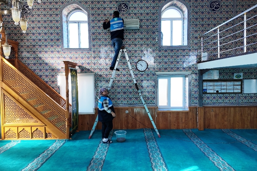 Belediye ekipleri, ilçedeki camilerde hijyenik koşulların sağlanması ve vatandaşların ibadetlerini temiz bir ortamda yapabilmesi amacıyla kapsamlı temizlik çalışmaları gerçekleştiriyor. Ekipler, camilerin halılarını süpürüp, camlarını temizleyerek, caminin detaylı temizliğini ve şadırvan ile tuvaletlerin dezenfekte edilmesi işlemini yapıyor.