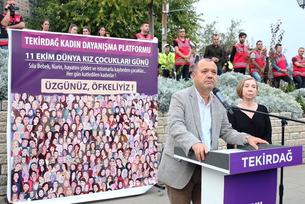 Seval Eşer’in ardından kürsüye davet edilen Tekirdağ Büyükşehir Belediye Başkanı Candan Yüceer konuşmasında; “Bu meydandayız yine ve aynı şeyleri söylemeye devam ediyoruz maalesef hala. Çünkü kadına yönelik şiddet, çocuk istismarı, kadın cinayetleri ülkemizde ve dünyada amansız bir şekilde devam ediyor. O 6284 sayılı yasanın düzenlenmesinde, İstanbul Sözleşmesi’nin imzalanmasında da ben de parlamentoda görev yapıyordum. Hep beraber parlamentoda olan herkesi hiçbir parti ayrımı yapmadan, cinsiyet ayrımı yapmadan gerçekten desteğiyle biz o yasaları çıkardık. Çünkü bildik ki, eğer mevzuat sağlam olursa, eğer yasalarla biz kadınları korursak ve en önemlisi bu çıkardığımız yasaları, bu sözleşmeleri uygularsak işte o hedeflediğimiz noktaya ulaşabiliriz. İşte o zaman bir kız çocuğu erken yaşta zorla evlendirilmek zorunda kalmaz. İşte o zaman bir kız çocuğu eğitim hakkından mahrum bırakılmaz. İşte o zaman kadın sadece kadın olduğu için şiddete, ayrımcılığa uğramaz, cinayetlere kurban gitmez. İşte bunun için mücadele ettik. Ama maalesef bu noktada da o attığımız olumlu adımlardan bir gecede, bir gecede çıkılarak maalesef geriye gidildi. Ama biz bir aradayız. Biz istiyoruz ki bu ülke huzuru, refahı, emeği her şeyiyle güçlensin, demokrasi ile güçlensin. Ama şunu da biliyoruz. Atatürk demiş bunu yıllar önce. Demiş ki Kadınlar güçlenmeden, kadınlar yükselmeden asla bir toplum yükselmez. İşte bizim de hedefimiz bu. Burada kadına şiddete hayır derken, kadın hakları derken, kadın cinayetleri artık son bulsun derken tek bir hedefimiz var. Daha iyiye, daha güzele, daha eşitliğe, daha çok demokrasiye ulaşabilmek. Eğer bir ailede, o ailede kadınlar mutsuzsa, şiddet görüyorsa, eşitsizliğe uğruyorsa o ailede yetişen çocuklar, o aileden oluşan toplumlar asla başarılı olamaz, olamıyor da. İşte biz diyoruz ki bu eşitliği, bu adaleti sağlamak için biz burada olmaya, bir arada olmaya, kadın haklarını, kadının eşitliğini savunmaya devam edeceğiz.” ifadelerini kullandı.