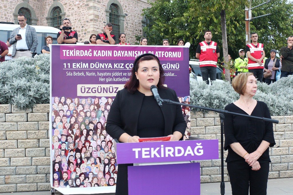 Son olarak kürsüye davet edilen CHP Tekirdağ Kadın Kolları Başkanı Büşra Nur Pelen açıklamalarda bulunurken; “Üzgünüz, öfkeliyiz. Bu önemli günde kaybettiğimiz kadın ve çocuklar için Tekirdağ Kadın Dayanışma Platformu olarak sesimizi yükselteceğiz. Ne yazık ki kadın cinayetlerinin, uyuşturucu kullanımının ve kadın cinayetlerinin arttığı bir dönemdeyiz. Kadına yönelik şiddet ve bu tür olumsuz gelişmeler sadece bireysel vakalar olarak ele anılmamalıdır, toplumsal bir sorundur. AKP döneminde şiddet, uyuşturucu kullanımı ve silahlanmada ciddi bir artış yaşanmaktadır. İstanbul Sözleşmesinin fes edilmesi ile başlayan süreç, kadınların güvenliğini tehlikeye atmış, şiddet ile mücadelede zayıf bir duruşa sebep olmuştur. Tüm vatandaşlarımızın sokaklarda korkuyla değil güvenle yürüdüğü bir Türkiye inşa etmek için mücadelemize devam edeceğiz. İstanbul Sözleşmesinin yeniden yürürlüğe girdiği ve kadınların hak ettiği güvenli ortama kavuştuğu bir Türkiye için hep birlikte kararlı bir duruş sergilemeye devam edeceğiz. Bütün kadınlar ve çocuklar özgür olana de mücadelemiz devam edecek.” İfadelerini kullandı.