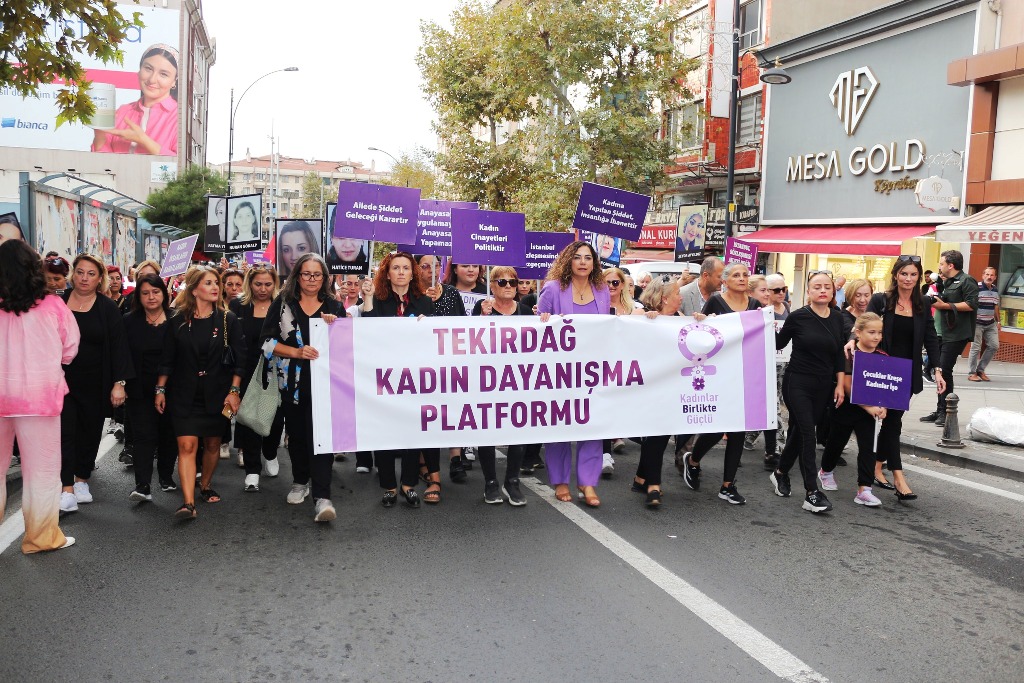 Köprübaşı mevkisinden başlayan yürüyüşe CHP Tekirdağ Milletvekili İlhami Özcan Aygun, Tekirdağ Büyükşehir Belediye Başkanı Candan Yüceer, Tekirdağ Kent Konseyi Başkanı Berrin Başol, Süleymanpaşa Kent Konseyi Başkanı Hülya Çetin, 29 Ekim Kadınları Derneği Başkanı Seval Eşer, TMMOB Ziraat Mühendisleri Odası Başkanı Cemal Polat, CHP Tekirdağ İl Kadın Kolları Başkanı Büşranur Pelen, CHP Süleymanpaşa İlçe Kadın Kolları Başkanı Özlem Dömeke, sivil toplum kuruluşları temsilcileri, akademisyenler, öğrenciler ve kadın cinayetlerine boyun eğmeyen vatandaşlar katıldı.