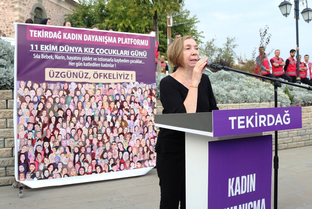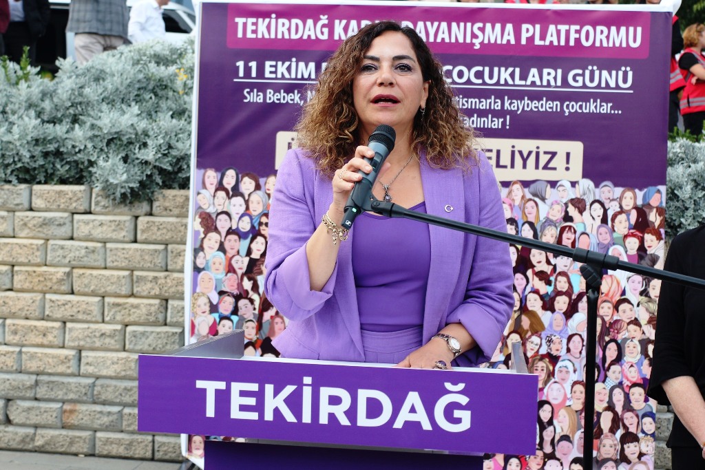 Hasan Ali Yücel Meydanı’nda yapılan basın açıklamasında ilk olarak konuşan 29 Ekim Kadınları Derneği Tekirdağ Şube Başkanı Seval Eşer; “Öldürülen kadınlar ve çocuklar. Türkiye Büyük Millet Meclisi’nde kdın cinayetlerini araştırmak için bir komisyon kurulmuş. Grubu olan partiler tarafından bu konuda uzlaşılmış. Çok güzel ama bizler işlevsiz komisyonlar istemiyoruz.” dedi.