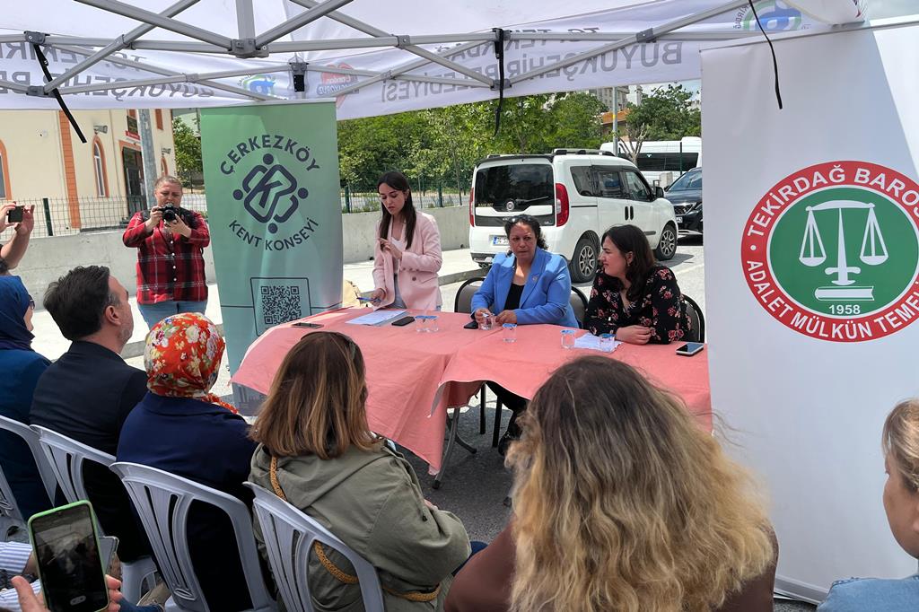 Çerkezköy İstasyon Mahallesi sakinlerinin yoğun ilgi gösterdiği etkinliğe, Tekirdağ Baro Başkanı Av. Egemen Gürcün, Tekirdağ Barosu Yönetim Kurulu Üyesi Av. Büşra Gürbüz, Çerkezköy Kent Konseyi Başkanı Volkan Kuru, İstasyon Mahallesi Muhtarı Sevgi Salış, Yıldırım Beyazıt Mahallesi Muhtarı Fatma Kaya ile Kent Konseyi Kadın Meclisi Başkanı Zeynep Bozkurt katıldı.