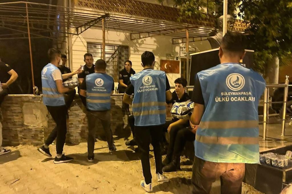 Devletin ilgili birimleri tarafından yürütülen yangınla mücadele operasyonuna gönüllü olarak destek veren Ülkü Ocakları ekipleri, alanda görev yapan personel ile yangından etkilenen vatandaşlara kumanya ve temel ihtiyaç malzemeleri dağıttı.