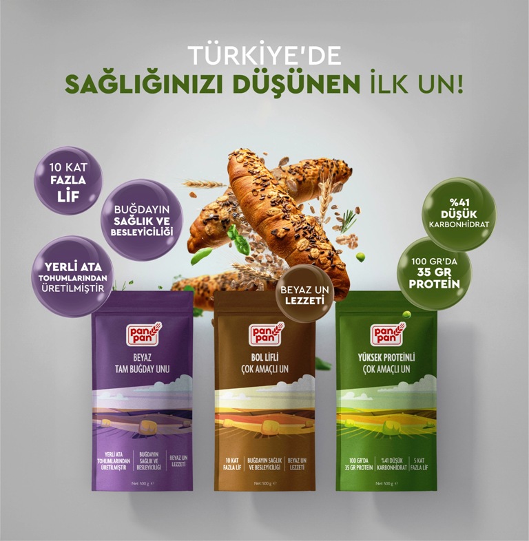 Türkiye’nin buğday ve buğday bazlı ürünler alanında en büyük üç markasından biri olan Doruk Un, 41 ülkeye ihracat gerçekleştiriyor. PanPan Un ile tüketici pazarına giren marka; ihtiyaca uygun, yüksek nitelikli ve lezzetli un seçenekleriyle sektörde öncü bir vizyon sergiliyor. Müşteri ve talep odaklı hizmet-ürün yaklaşımı ile hareket eden, pazar ve müşteri beklentilerine göre farklı nitelik ve kalitelerde ürün çeşitleri geliştiren marka, yıllara dayalı tecrübesini ve kullanım amacına uygun un üretiminden edindiği birikimi, PanPan Un’da birleştiriyor. Tam buğday unu, özel amaçlı sade kek unu, özel amaçlı baklava-börek unu ve çok amaçlı buğday unu olmak üzere 4 farklı ürün grubuna sahip olan Panpan Un, son olarak “Sağlıklı Un” kategorisini ürün ailesine ekledi. Türkiye’de ilk defa beyaz unun lezzetiyle buğdayın sağlıklı ve besleyici içeriğini bir araya getirerek, tüketicilerin bu alandaki gereksinimlerini karşılayan marka; Beyaz Tam Buğday Unu, Bol Lifli Çok Amaçlı Un ve Yüksek Proteinli Çok Amaçlı Un olmak üzere üç farklı un çeşidi sunuyor. PanPan paketli un kategorisinde 5 yıl içinde yıllık 50.000 tondan fazla tonaja ulaşarak, Türkiye’nin en büyük 3 paketli un markasından biri olma hedefinde…