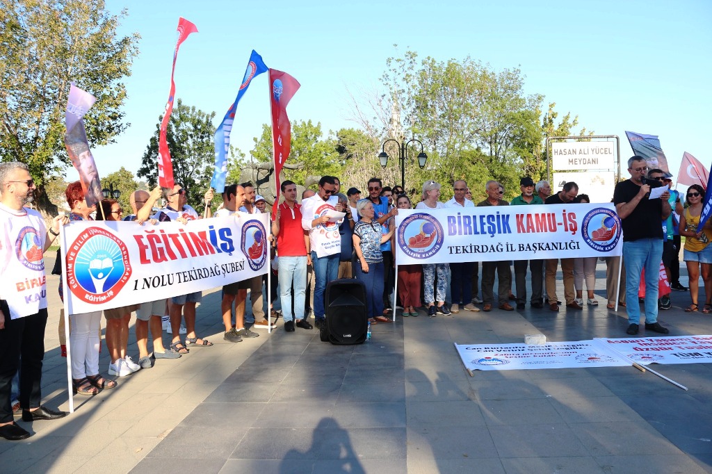 Hasan Ali Yücel Meydanı’nda gerçekleşen basın açıklamasına Kamu Konfederasyonları Platformu üyelerinin yanı sıra CHP Tekirdağ Milletvekili Nurten Yontar, CHP Süleymanpaşa İlçe Başkanı Ali Engin, DEVA Partisi Süleymanpaşa İlçe Başkanı Ozan Varan, Ziraat Mühendisleri Odası Başkanı Cemal Polat, ve bazı sivil toplum kuruluşları temsilcileri de destek verirken platform adına basın açıklamasını gerçekleştiren Rıdvan Dırak konuşmasında şunları söyledi: