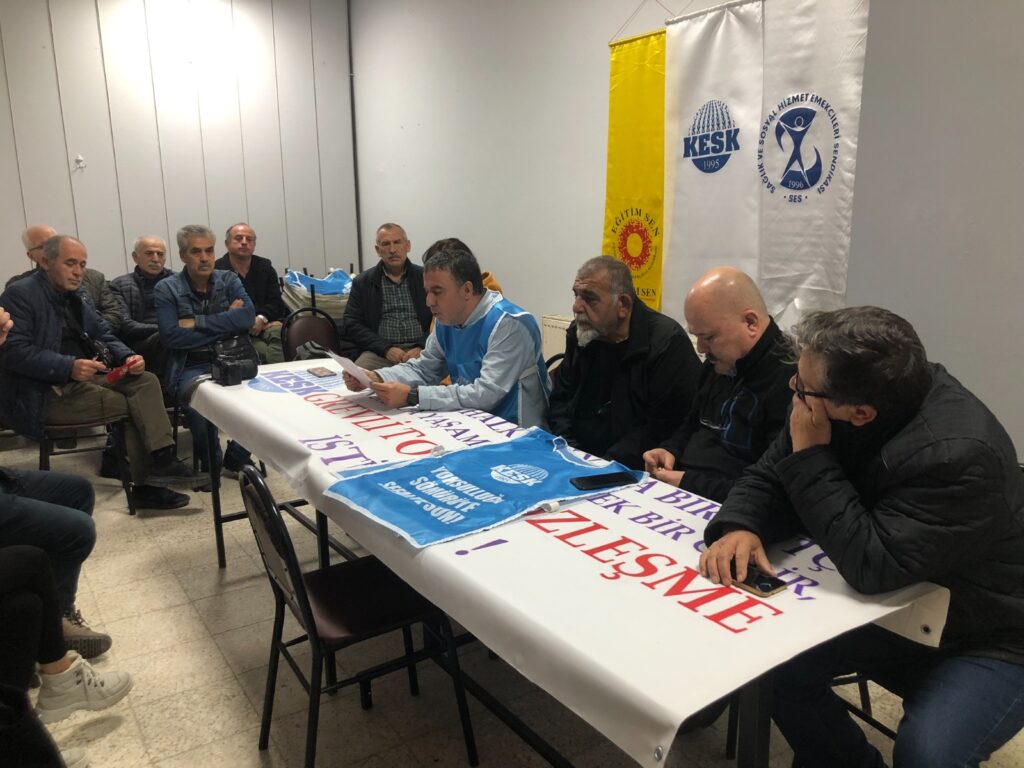 Tüm kamu emekçilerini ve emeklileri; bugünün acil talebi olan yüzdelik değer olarak en az asgari ücret artışı talebine olduğu kadar, en temel talebimiz olan insanca yaşamaya yetecek yoksulluk sınırı üzerinde ücret talebine sahip çıkmak için, bir kez daha buradan omuz omuza birlikte mücadele vermeye; hakkımız olanı istemeğe çağırıyoruz.”